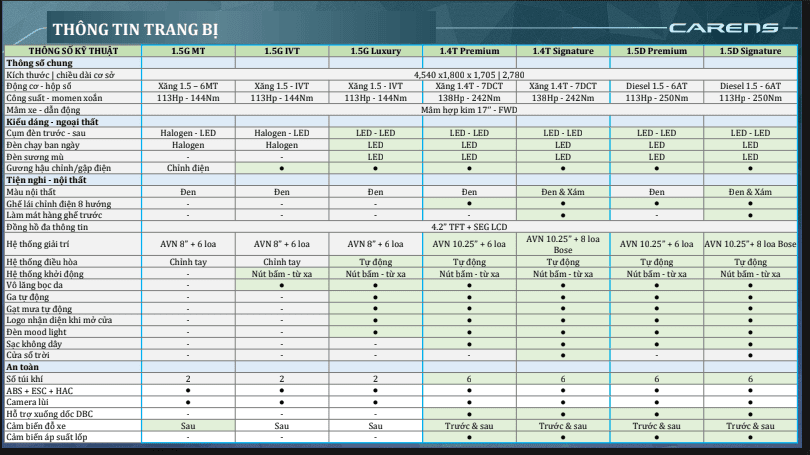 Thông số KIA Carens